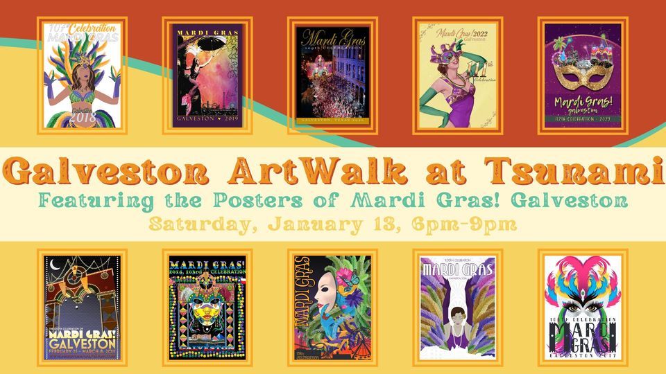ArtWalk with the Posters of Mardi Gras! Galveston, Tsunami